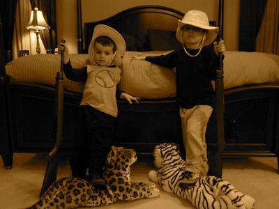 For Christmas 2005 Michael and Matthew got a stuffed Tiger and stuffed Leopard from their grandpa Shorb. I could not resist having a bit of fun with them. I figured that it would be great to get a Hemingway-esque safari hunt photo... I think I got the great shot. It is all in the expression on their faces. I added a Sepia tone to give it an ‘old’ time look... One of these days Photoshop out the phone and picture, otherwise I think I pulled it off! (*smile*)